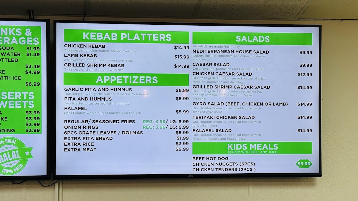 Our Mediterranean house salad topped with chopped Falafels and Feta cheese.